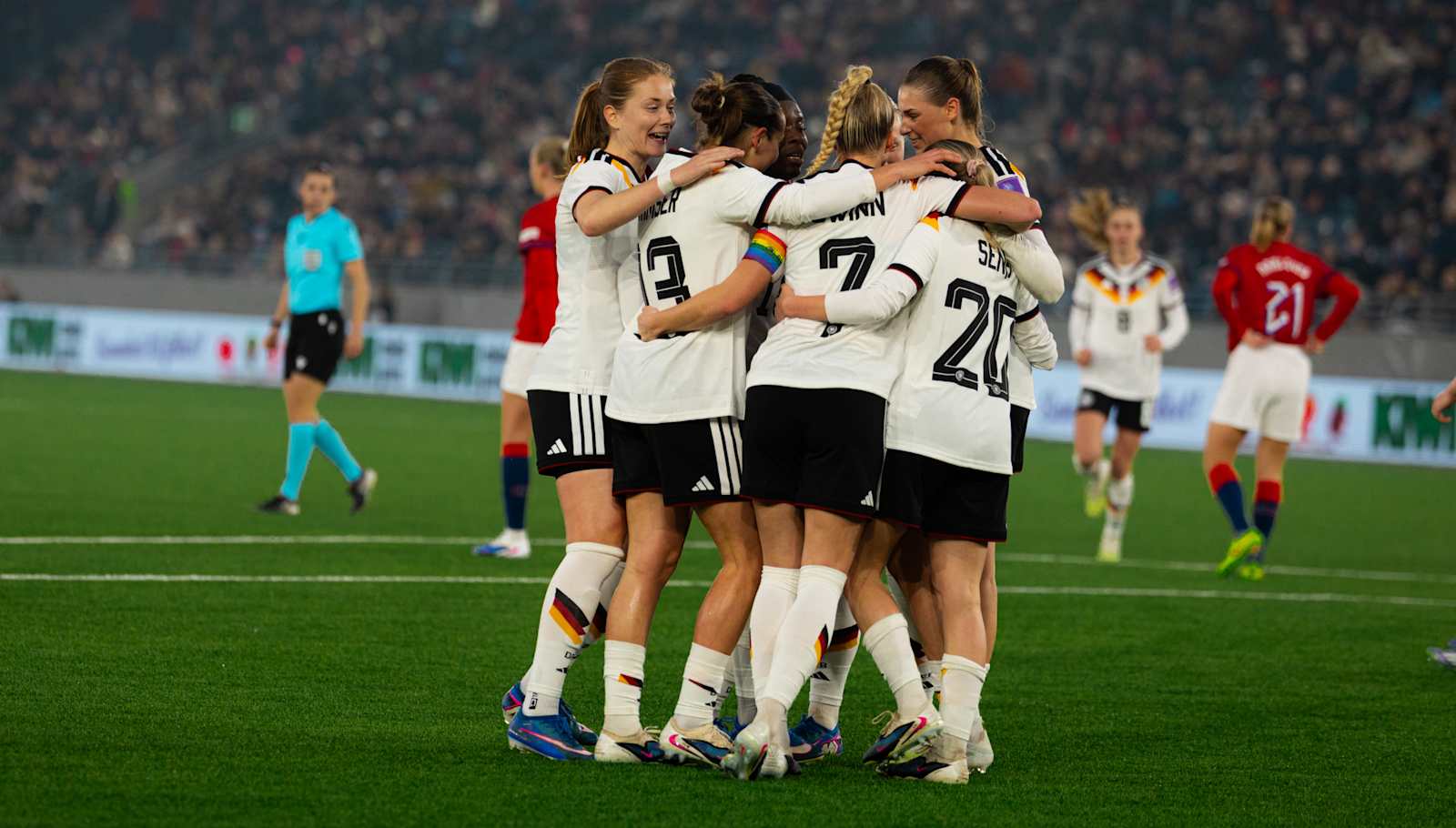 Die deutsche Frauen-Nationalmannschaft hat auch ihr zweites Spiel in der WM-Qualifikation gewonnen. Das Team von Bundestrainer Christian Wück besiegte Norwegen vor 8500 Zuschauern in der Lyse Arena in Stavanger mit 4:0 (3:0).