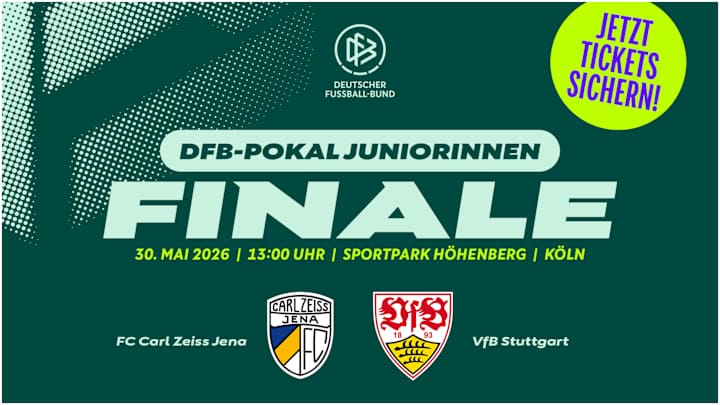 Am 30. Mai (ab 13 Uhr, live bei YouTube) kämpfen die B-Juniorinnen des FC Carl Zeiss Jena und VfB Stuttgart im DFB-Pokal der Juniorinnen um den Titel. Tickets für das Duell im Sportpark Höhenberg in Köln sind nun erhältlich.