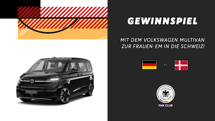 Zur UEFA Frauen-EM in der Schweiz wartet auf Mitglieder des Fan Club Nationalmannschaft ein Highlight: Mit Volkswagen geht es für 2x4 Gewinner zum Spiel Deutschland vs. Dänemark am 8. Juli in Basel – inklusive Anreise im DFB-VW-Multivan!