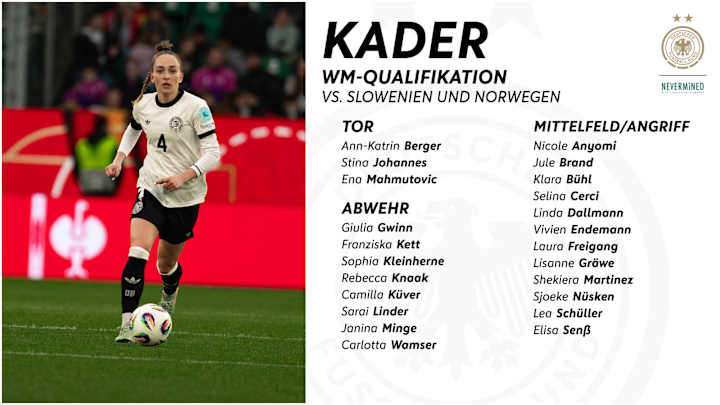 Für die Frauen Nationalmannschaft startet heute die WM-Qualifikation. Das Team von Bundestrainer Christian Wück trifft im ersten Spiel auf Slowenien. Im Vergleich zum Women's Nations League Finale im Dezember rotiert Wück auf vier Positionen.