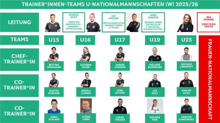 In der Saison 2025/2026 setzt der DFB im Bereich der weiblichen U-Nationalmannschaften auf personelle Verstärkungen und enge Verzahnung der Altersklassen. Michael Urbansky übernimmt die U 23, Melanie Behringer die U 19 und Kathrin Peter die U 16.
