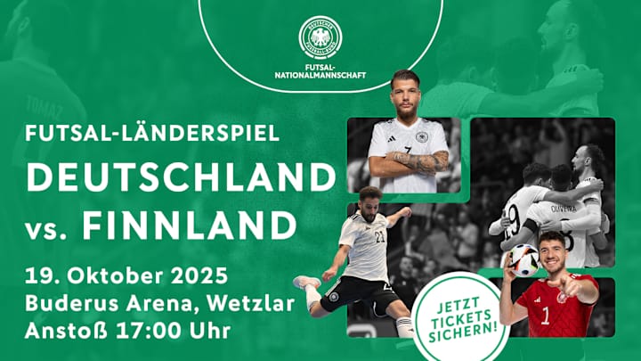 Die DFB-Futsalauswahl startet im Herbst in die Saison 2025/2026. Das Team von Bundestrainer Marcel Loosveld testet im Oktober zweimal in Länderspielen gegen Finnland. Ab 28. August gibt's Tickets für die Partien in Wetzlar und Elsenfeld.