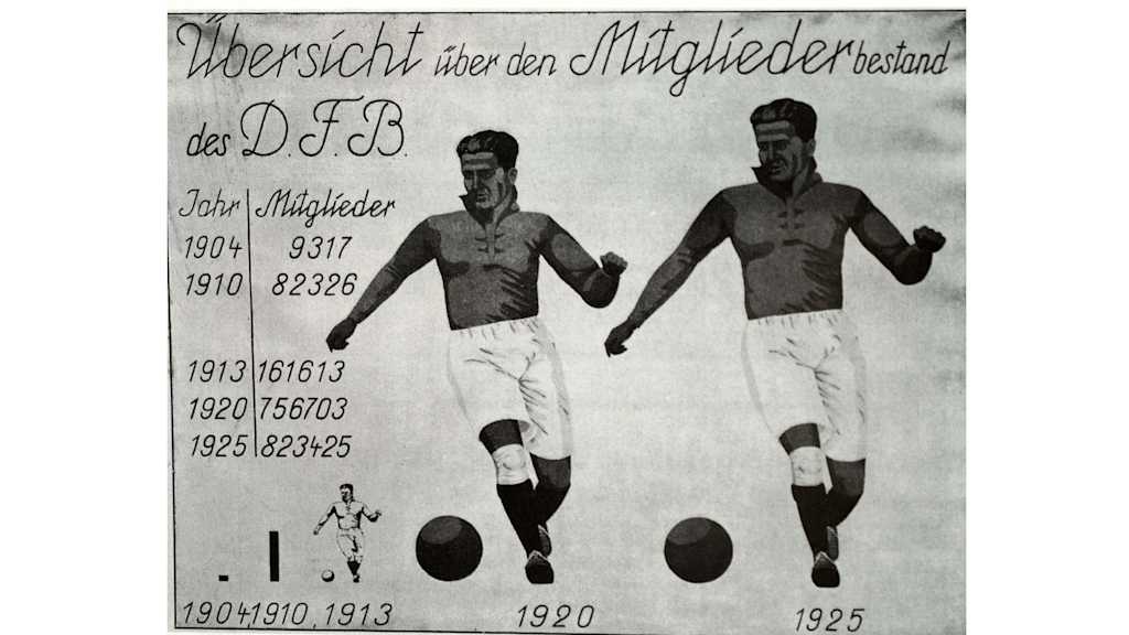 Nach dem 1. Weltkrieg wird Fußball endgültig zum Volkssport und die Mitgliederzahl des DFB wächst rasant an. 1932 hat der DFB erstmals über eine Millionen Mitglieder.