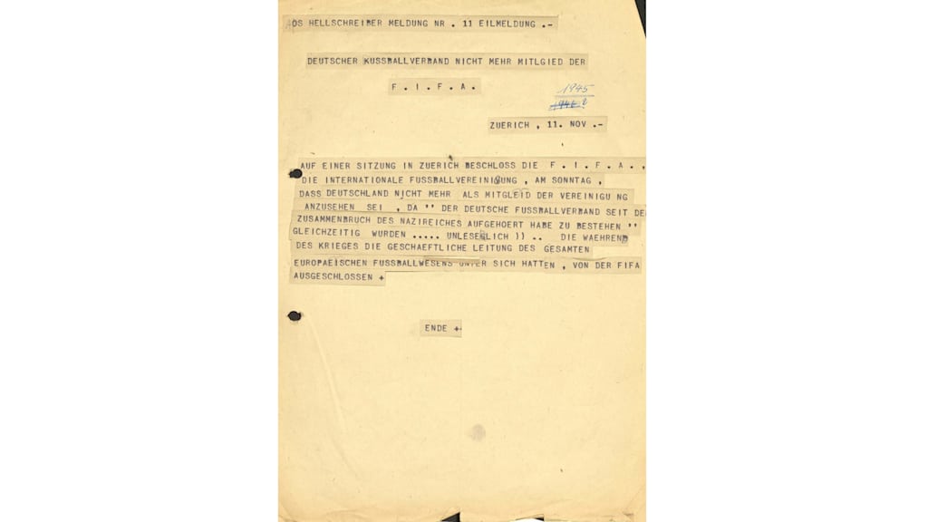 Nach dem Ende des Zweiten Weltkriegs wird Deutschland 1945 aus der FIFA ausgeschlossen.