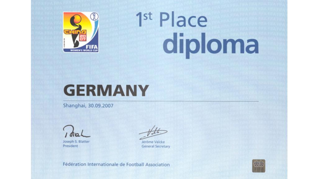 Die deutsche Frauen-Nationalmannschaft gewinnt 2007 in China ihren zweiten Weltmeistertitel ddurch einen 2:0-Sieg gegen Brasilien. Birgit Prinz und Simone Laudehr erzielen die Treffer in Shanghai. Nadine Angerer hält einen Foulelfmeter von Marta.