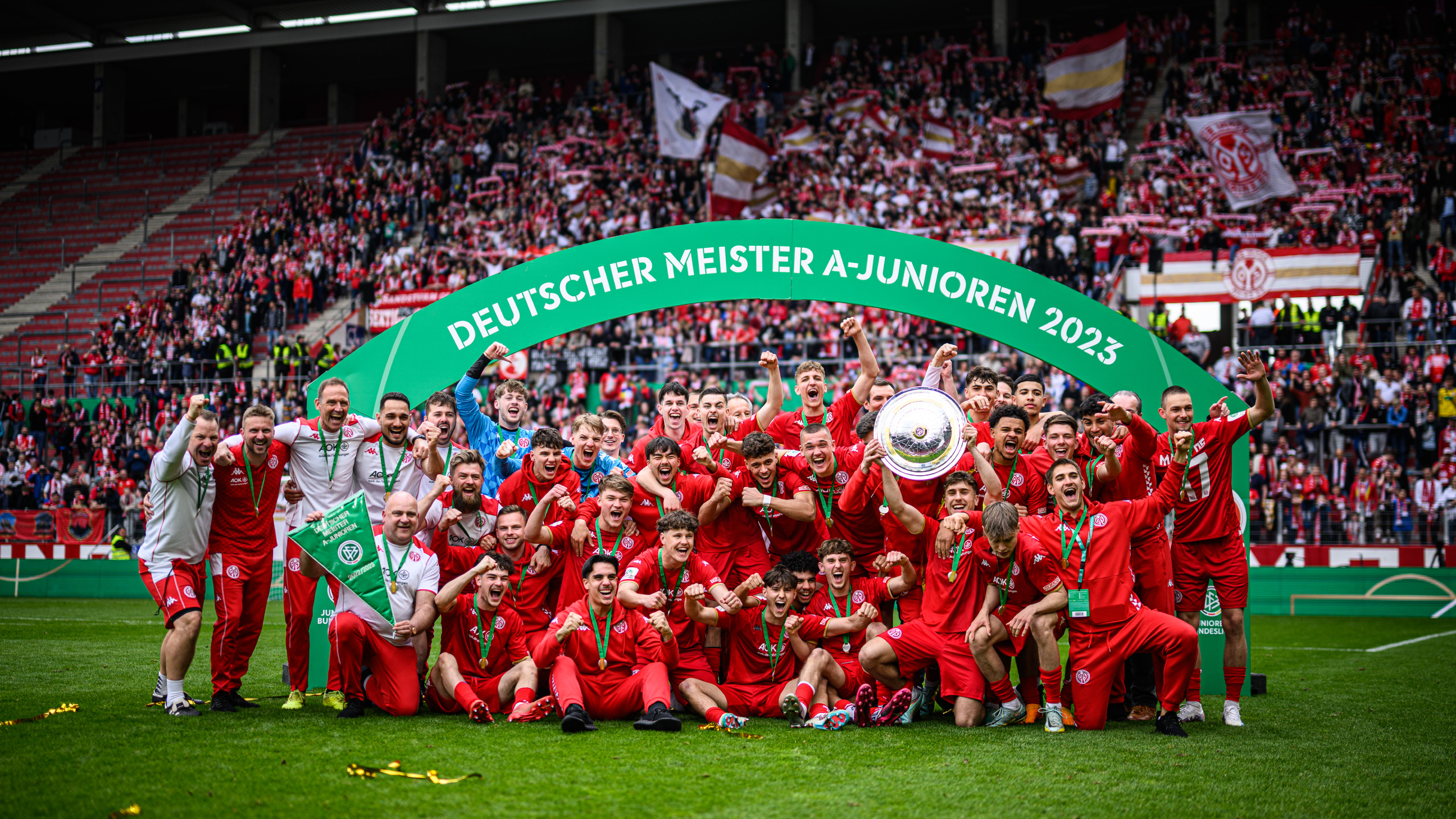 Der 1. FC Köln sichert sich die Deutsche Meisterschaft der A-Junioren in der DFB-Nachwuchsliga. In einem turbulenten Finale setzte sich die Mannschaft von Stefan Ruthenbeck vor fast 25.000 Zuschauern mit 5:4 gegen Bayer 04 Leverkusen durch.