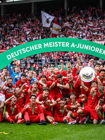 Der 1. FC Köln sichert sich die Deutsche Meisterschaft der A-Junioren in der DFB-Nachwuchsliga. In einem turbulenten Finale setzte sich die Mannschaft von Stefan Ruthenbeck vor fast 25.000 Zuschauern mit 5:4 gegen Bayer 04 Leverkusen durch.