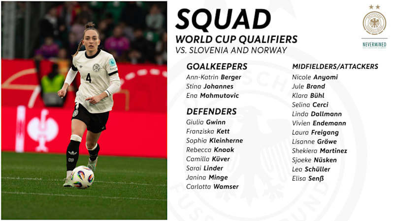 Women’s national team head coach Christian Wück has announced which 23 players will make up the squad for Germany’s first set of qualifying fixtures for the 2027 FIFA Women's World Cup in Brazil.