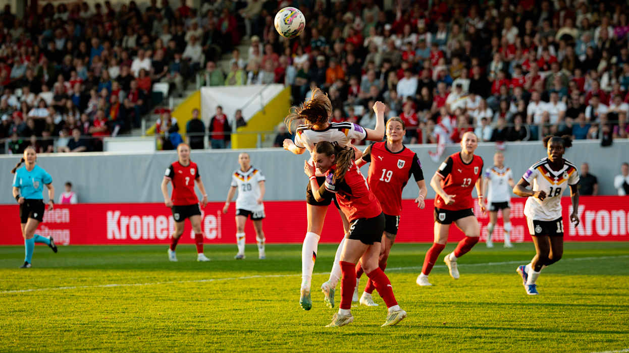 Die deutsche Frauen-Nationalmannschaft hat in der Qualifikation für die Weltmeisterschaft 2027 in Brasilien die ersten Punkte liegen lassen. Das Team von Bundestrainer Christian Wück kam in Ried im Innkreis gegen Österreich in einer chancenarmen Partie nicht über ein 0:0 hinaus. Nach dem furiosen 5:1 (1:0) am vergangenen Dienstag gegen den deutschen Nachbarn verpasste die DFB-Auswahl ihren vierten Sieg im vierten Qualifikationsspiel, bleibt aber in der Gruppe 4 mit 10 Punkten vor Norwegen (9) und Slowenien (3) Tabellenführer. Nur der Gruppensieger löst sicher das Ticket für die Endrunde, die Zweit-, Dritt- und Viertplatzierten haben noch die Möglichkeit, sich über die Playoffs zu qualifizieren. Weiter geht's für die deutsche Auswahl in der WM-Quali am 5. Juni (ab 20.30 Uhr) im direkten Duell mit Norwegen in Köln.