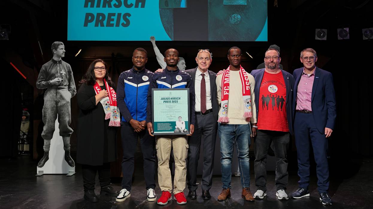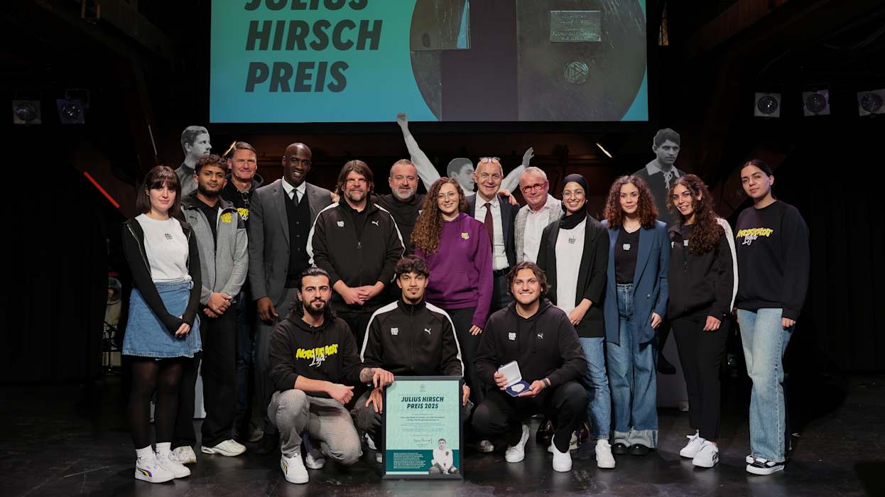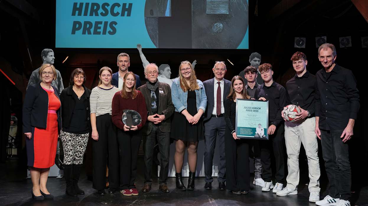 Der Deutsche Fußball-Bund (DFB) hat am heutigen Donnerstag den Seminarkurs der 11. Klasse des Ludwig-Marum-Gymnasiums in Pfinztal bei Karlsruhe, das Projekt "Nordstadtliga" aus Dortmund und den FC Mainaustrasse aus München mit dem diesjährigen Julius Hirsch Preis ausgezeichnet. Bei der Preisverleihung vor 350 Gästen aus den Bereichen Sport, Kultur, Politik und Soziales in Hamburg wurde außerdem Jubiläum gefeiert: Der Julius Hirsch Preis wurde vor 20 Jahren zum ersten Mal verliehen. Zahlreiche Preisträger*innen aus diesen zwei Jahrzehnten waren bei der Veranstaltung im Kultur- und Kommunikationszentrum FABRIK zu Gast.