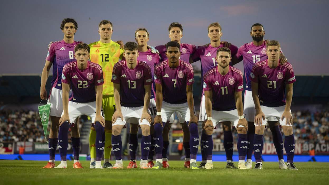 Antonio Di Salvo reagierte auf den bereits feststehenden Einzug ins Viertelfinale und stellte im Vergleich zum 4:2-Sieg gegen Tschechien eine komplett neue Startelf auf. Vor Torhüter Tjark Ernst verteidigten Tim Oermann und Jamil Siebert in der Innenverteidigung sowie Elias Baum und Lukas Ullrich auf den Außenpositionen. Das defensive Mittelfeld bildeten Kapitän Merlin Röhl und Caspar Jander. Auf den offensiven Flügeln starteten Ansgar Knauff und Jan Thielmann. Paul Wanner agierte in der zentralen Offensive hinter Stoßstürmer Nelson Weiper.