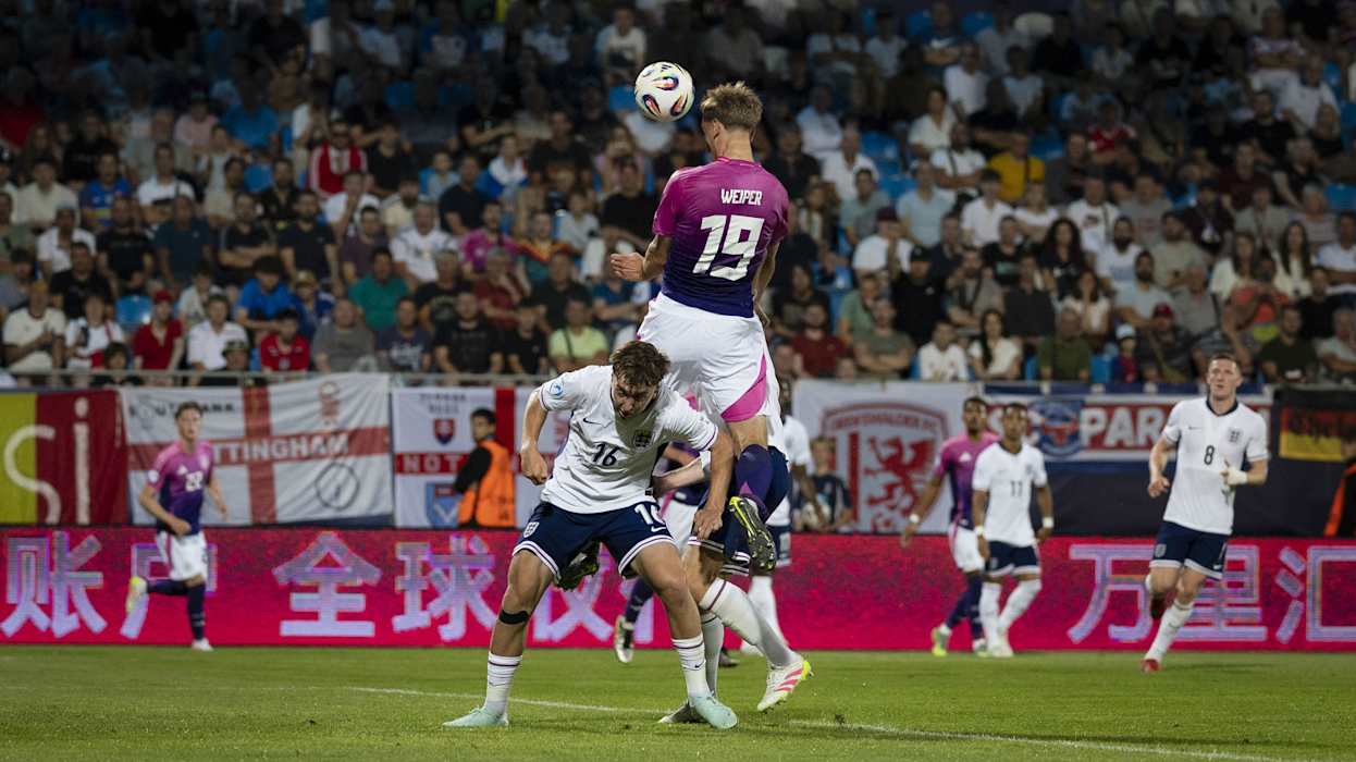 Noch vor der Halbzeitpause gelang es dem DFB-Team, den Spielstand auf 2:0 zu erhöhen. Nach einer präzisen Flanke von Knauff setzte sich Weiper gegen zwei Gegenspieler durch, sprang am höchsten und köpfte den Ball ins Tor der "Young Lions". Damit erzielte er seinen Premierentreffer für die U 21 (33.). Die Engländer erarbeiteten sich zwar immer wieder kleinere Chancen, zwingend wurden sie vor der Halbzeit jedoch nicht mehr.