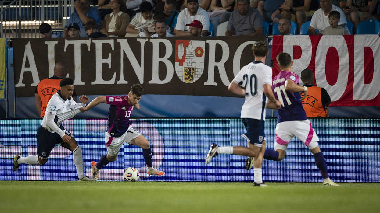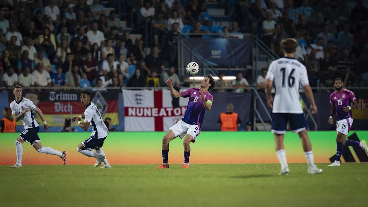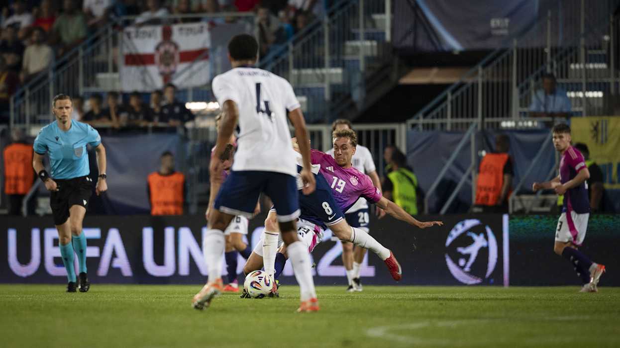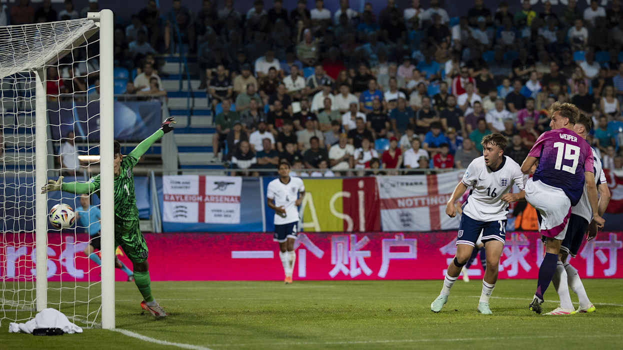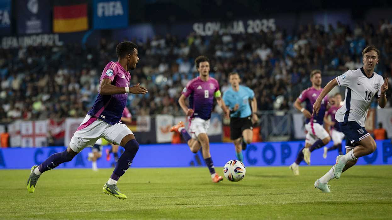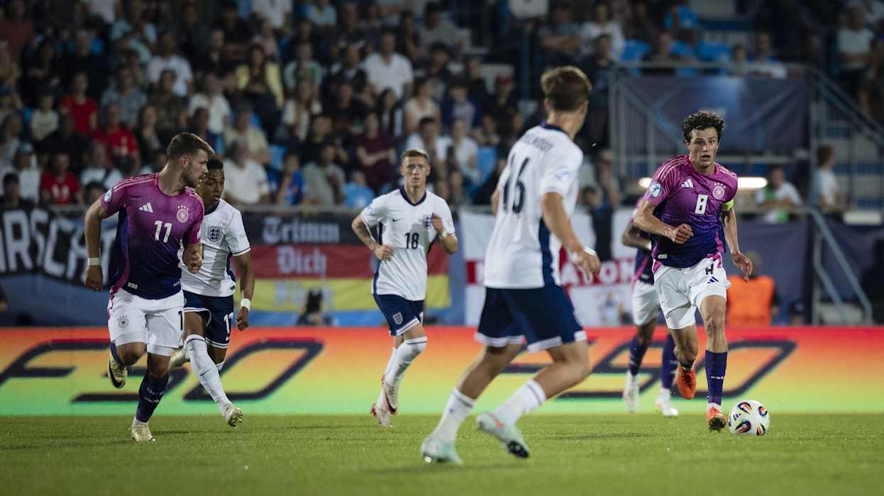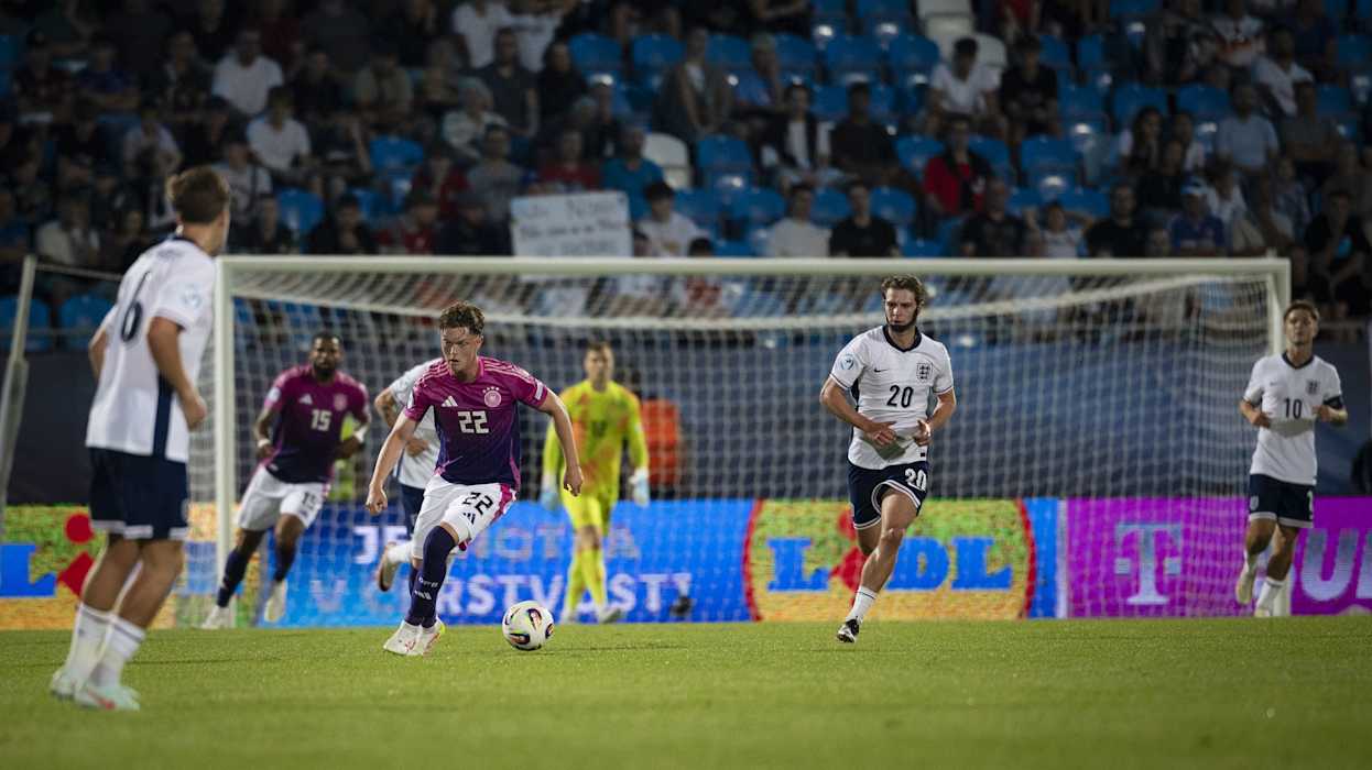 Die Tore für die DFB-Auswahl erzielten Ansgar Knauff (3.) und Nelson Weiper (33.), für England traf Alex Scott (76.). Deutschland war schon vor dem Spiel für das Viertelfinale qualifiziert. Durch den Sieg ist Deutschland Erster der Gruppe B. Im Viertelfinale spielt das Di Salvo-Team nun am Sonntag (ab 21 Uhr, live in SAT.1) gegen Italien, das Zweiter in Gruppe A wurde. Die Tschechische Republik hat im Parallelspiel 2:0 gegen Slowenien gewonnen. Dadurch ist England Gruppenzweiter und trifft am Samstag (ab 21 Uhr) auf Spanien.