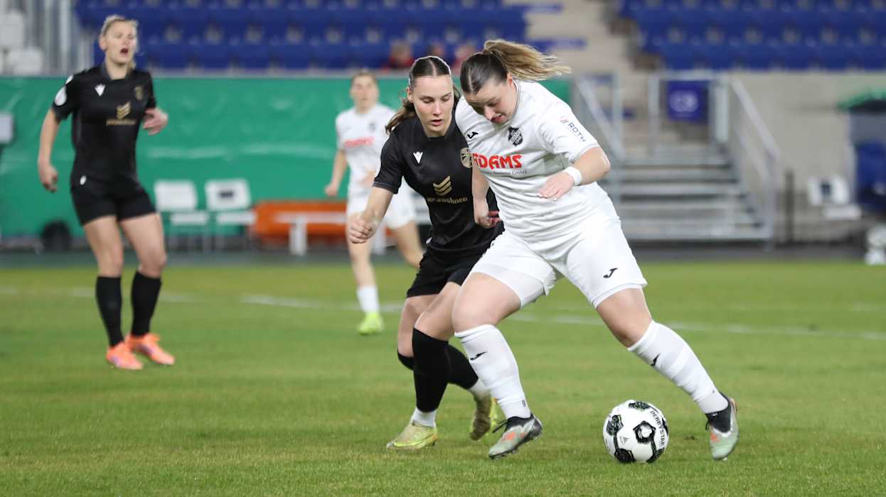 Im Duell des Letzten der Google Pixel Frauen-Bundesliga gegen den Zweitplatzierten der 2. Frauen-Bundesliga setzte sich der Bundesligist FC Carl Zeiss Jena durch. Die Gastgeberinnen kamen besser in die Partie und belohnten sich nach rund zwanzig Minuten mit der Führung. Nach einer flachen Hereingabe von rechts stand Melina Reuter am langen Pfosten völlig frei und beförderte den Ball aus zwölf Metern von halblinks flach in die Ecke (19.). In der Folge wurden die Gäste stärker und pressten die Blau-Gelb-Weißen hoch. Kurz vor der Halbzeit sorgte Rio Takizawa mit einem Distanzschuss aus rund 30 Metern in den linken Torwinkel sehenswert für den Ausgleich (40.). Julia Matuschewski hatte vor dem Halbzeitpfiff noch zwei Chancen zur Führung, verfehlte aber jeweils knapp das gegnerische Tor (43., 44.).