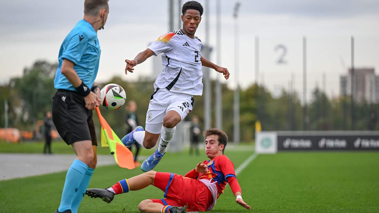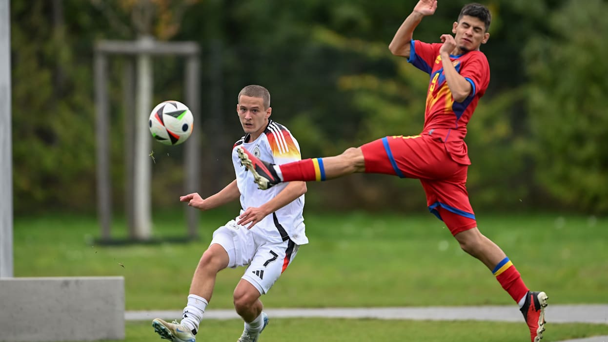 Die deutsche U 17-Junioren-Nationalmannschaft hat einen perfekten Start in die erste EM-Qualifikationsrunde hingelegt. Die DFB-Junioren von Trainer Marc Meister gewann auf dem DFB-Campus in Frankfurt am Main ihren ersten Auftritt mit 4:0 (1:0) gegen Andorra. Eintracht Frankfurts Alexander Staff sorgte für die frühe Führung (5.), Yunus Ünal von Hertha BSC sorgte kurz nach der Pause für die Vorentscheidung (47.). Bayerns Lennart Karl (70., Elfmeter) und Gladbachs Can Armando Güner (81.) trafen zum Endstand.
