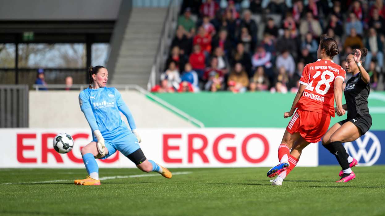 Der FC Bayern München steht im Finale des DFB-Pokals der Frauen. Der Titelverteidiger setzte sich am Ostermontag gegen den Ligakonkurrenten SGS Essen mit 4:0 (3:0) durch. Die Tore für das Team von Trainer José Barcala erzielten Momoko Tanikawa (29.), Pernille Harder (40.) und Edna Imade (45.+4/73.).