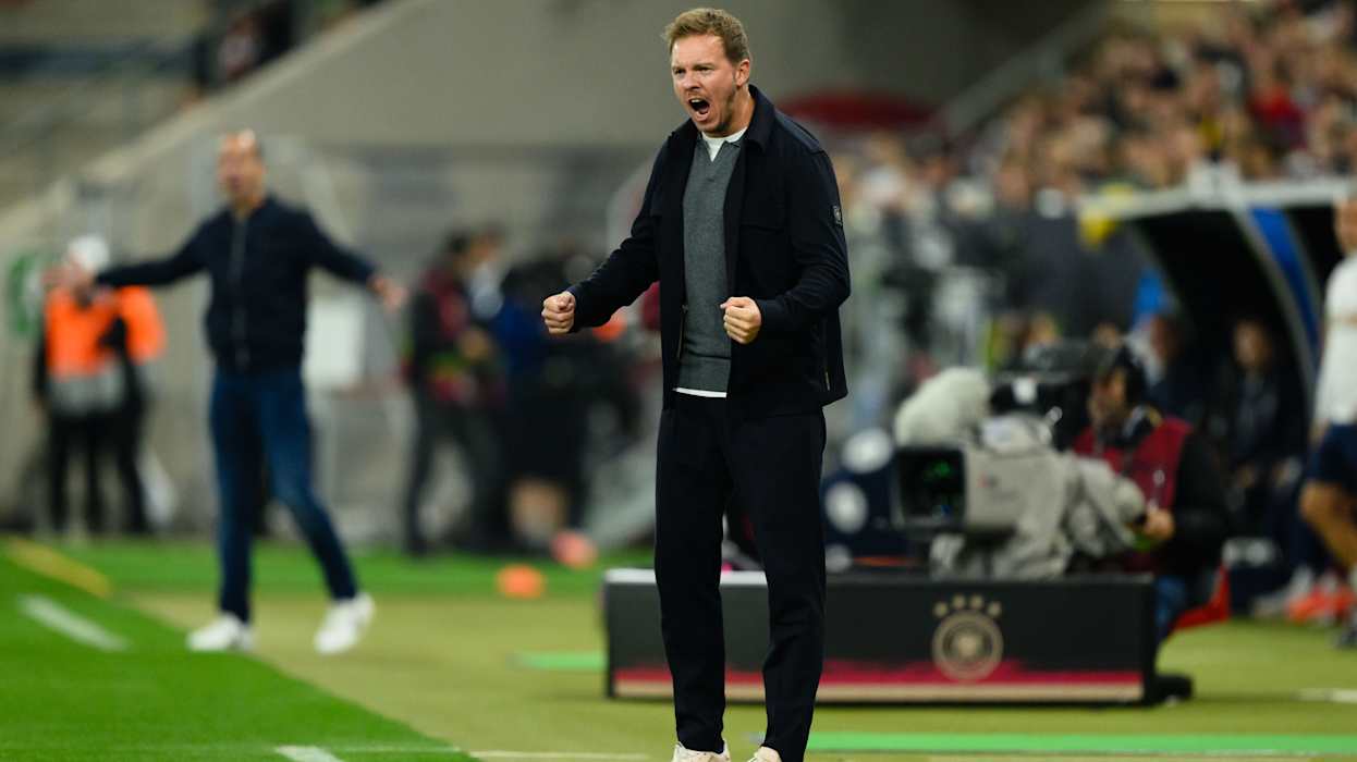 Eine Angriffswelle nach der anderen lief aufs Gästetor, so durfte Kimmich nach einem von vielen Flankenbällen im Strafraum aus kurzer Distanz den Doppelpack schnüren. In der 61. Minute wechselte Nagelsmann erneut, brachte Jonathan Burkardt und Rückkehrer Ridle Baku für Woltemade und Adeyemi (61.). Und die beiden neuen hätten fast gleich mitjubeln können, doch Wirtz' Freistoß aus zentraler Position klatschte nur an den Pfosten (63.). Kurz darauf machte Torschütze Gnabry Platz für Maximilian Beier (68.).