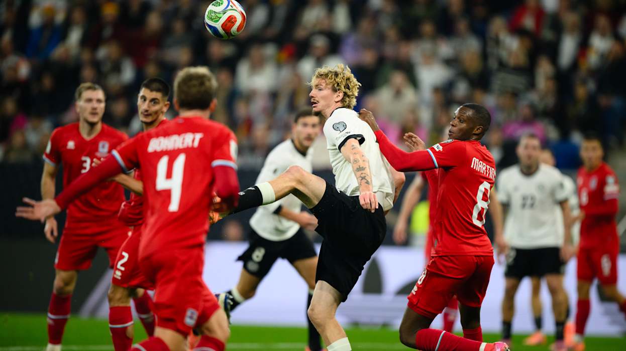 Und die deutsche Elf startete schwungvoll, schon in der vierten Minute prüfte Kimmich aus der Distanz Torhüter Anthony Moris, kurz darauf brandete erstmals Jubel durch das Stadion, doch der Treffer Gnabrys wurde zurückgenommen, weil Woltemade mit der Hand abgefälscht hatte. Nur wenige Minuten später ertönte dann doch die Torhymne, weil Raum einen Freistoß aus zentraler Position zur Führung sehenswert neben den Pfosten schlenzte.