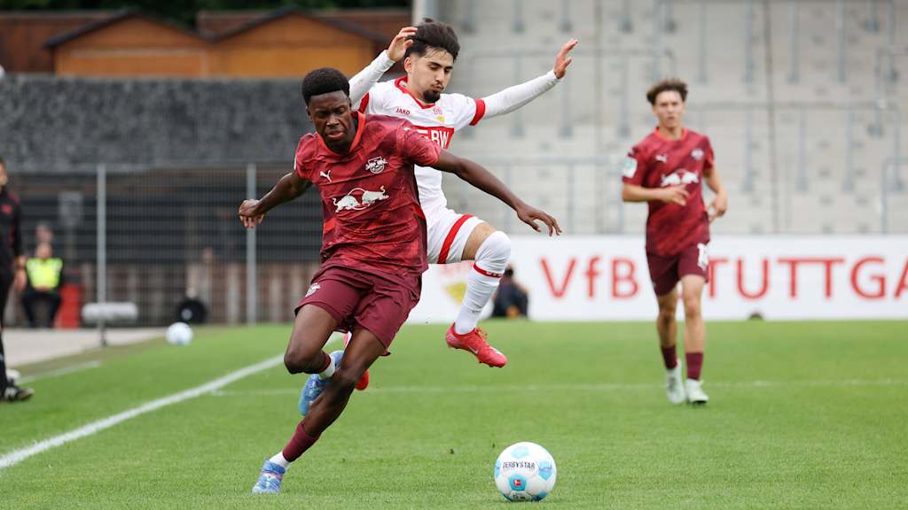 Beim Duell zwischen Stuttgart und Leipzig legten beide Teams von der ersten Minute an ein hohes Tempo an den Tag. So dauerte es auch nicht lange bis zum ersten Treffer. Zunächst entschied VfB-Abwehrspieler Luc Holzwarth als letzter Verteidiger ein Laufduell für sich, unmittelbar danach leitete er den Gegenstoß ein. Nikolas Matic setzte sich auf der rechten Seite durch und legte den Ball flach in den Strafraum. Dort war U 16-Nationalspieler Ertugrul Yigit zur frühen 1:0-Führung (4.) zur Stelle.