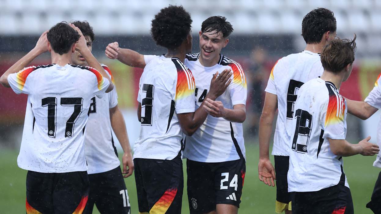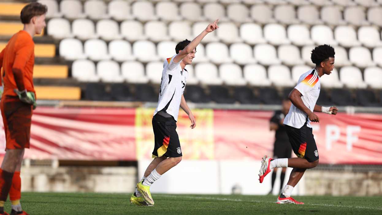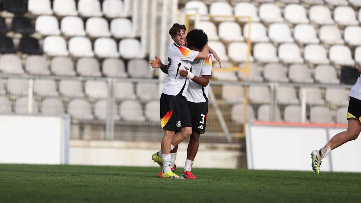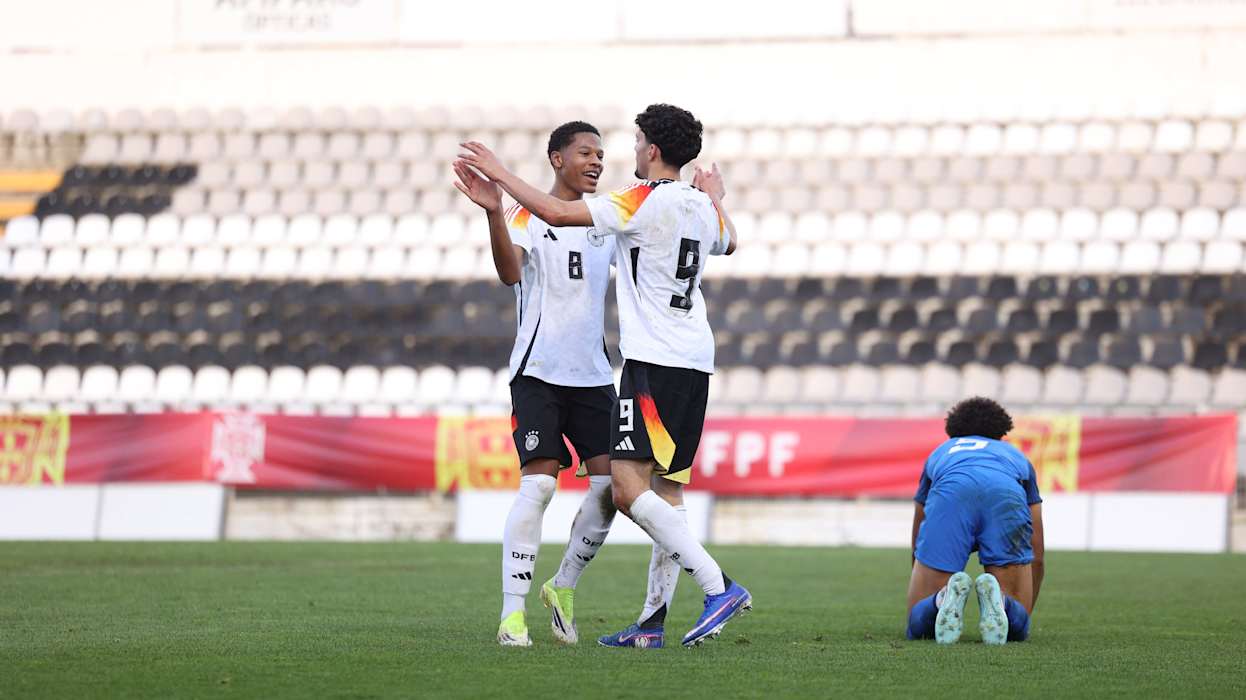 Justin Seven-Seven von West Bromwich Albion brachte den deutschen Nachwuchs in der 5. Minute in Führung, Borussia Dortmunds Fadi Zarqelain erhöhte kurz darauf (9.), vor der Halbzeit legten Torben Leis vom 1. FC Heidenheim (35.), Dion Hofmeister vom 1. FC Kaiserslautern (45.) in seinem ersten U 17-Länderspiel sowie Heidenheims Tim Radöhl (45.) nach. Eintracht Frankfurts Josef Haßfeld (73.) und Jannik Veit vom SC Freiburg (87.) erzielten die Tore im zweiten Durchgang. Weiter geht's am Sonntag (ab 17 Uhr) im Estádio Municpal da Bela Vista in Parchal gegen Spanien, zum Abschluss wartet am Mittwoch (ab 12 Uhr) im Estadio Algarve Gastgeber Portugal.