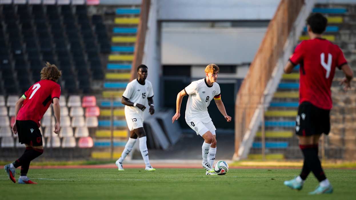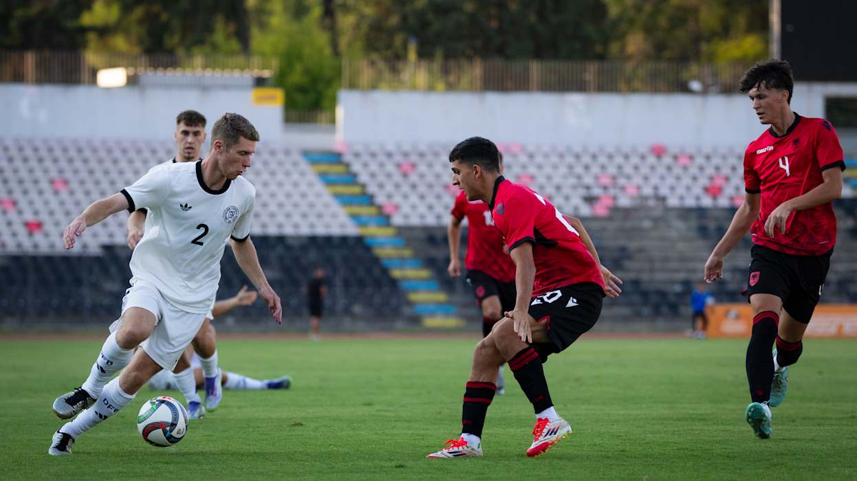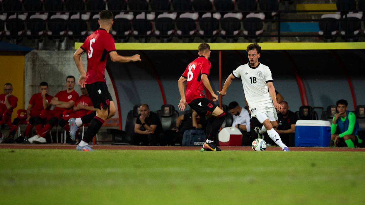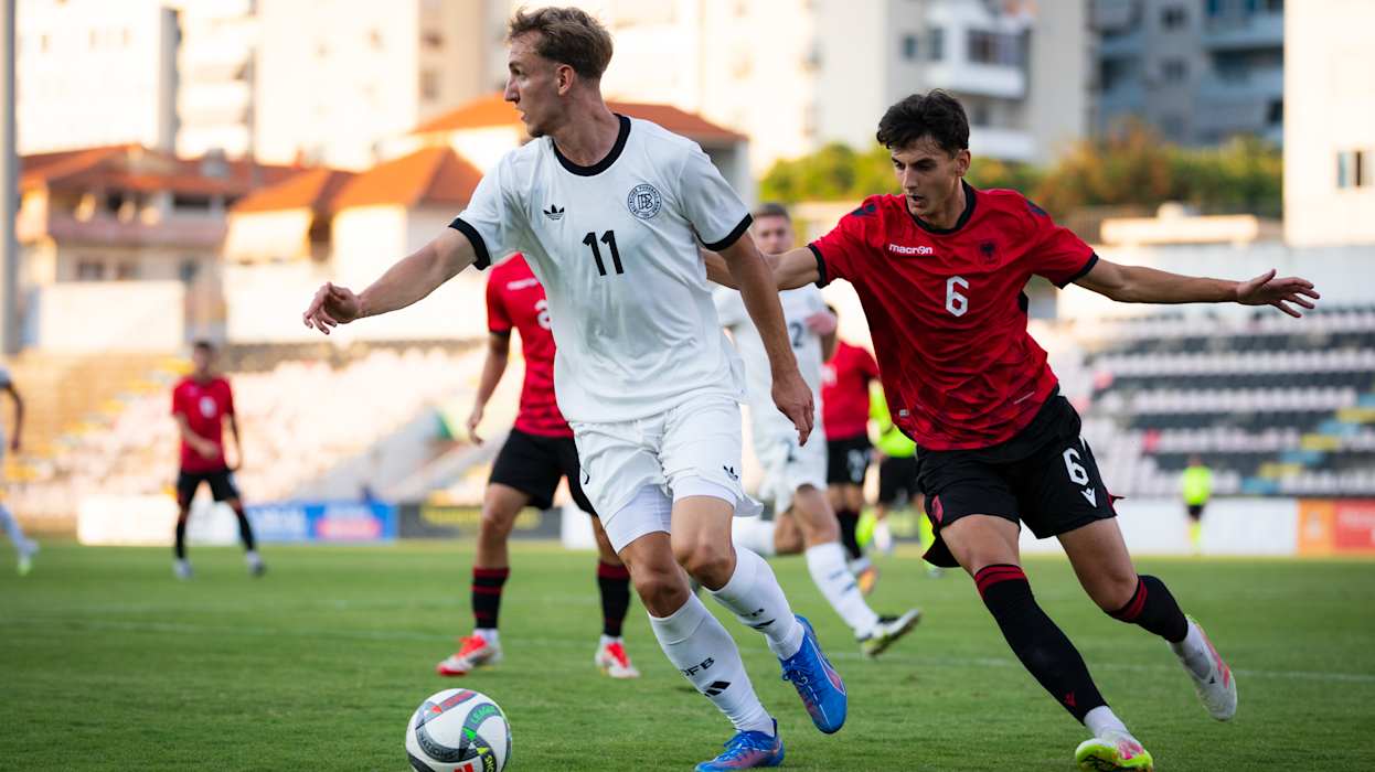 Der neue Jahrgang der deutschen U 21-Nationalmannschaft ist mit einem Sieg in die Saison gestartet. Die Mannschaft von Cheftrainer Antonio Di Salvo setzte sich in Albanien, Co-Gastgeber der nächsten U 21-EURO 2027, 2:0 (0:0) durch. In Elbasan traf Debütant Ilyas Ansah in der 48. Minute vor 2234 Zuschauer*innen zur deutschen Führung, in Dzenan Pejcinovic legte ein weiterer Neuling direkt nach (52.).