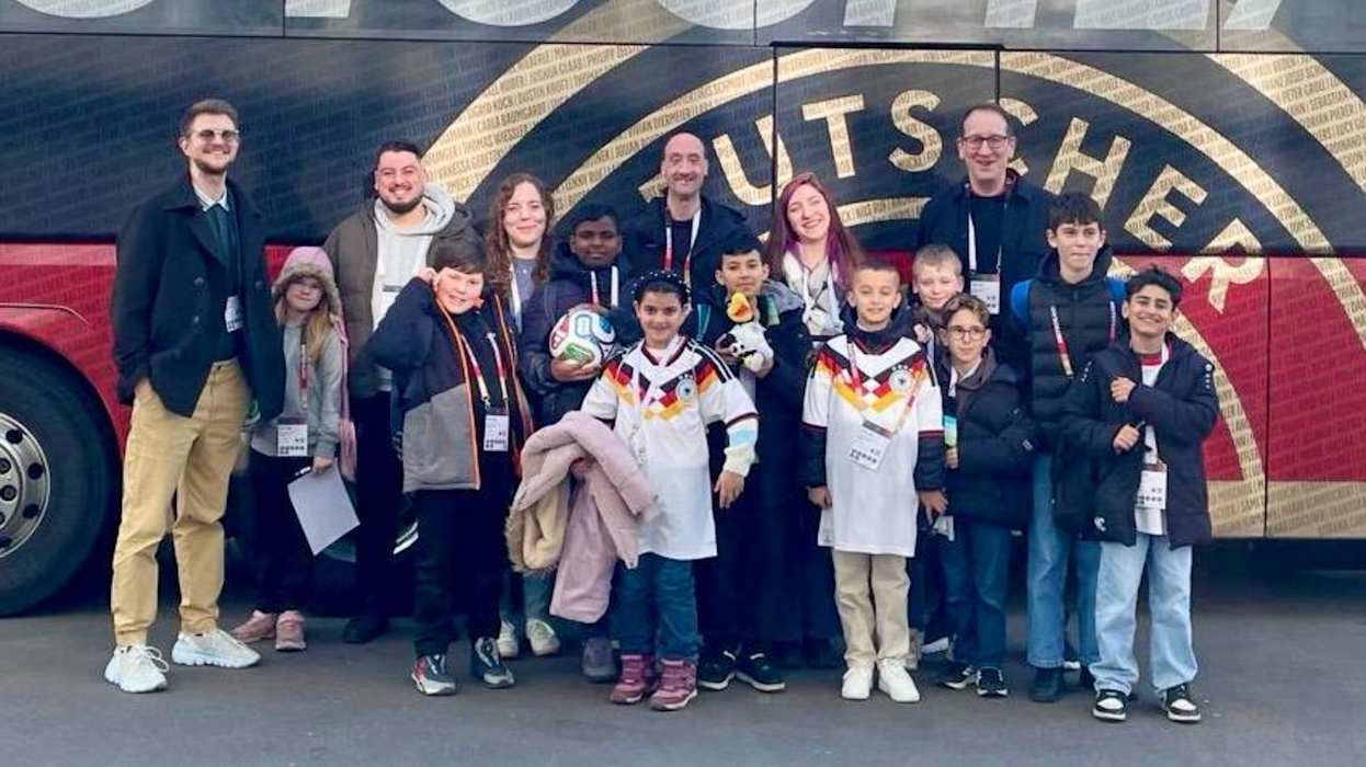 Im Anschluss verfolgten die Kinder das Abschlusstraining hautnah vom Spielfeldrand aus, bevor sie einen exklusiven Einblick in den Mannschaftsbus erhielten - für viele ein fast noch größeres Erlebnis als das Treffen mit den Spielern selbst. Den krönenden Abschluss bildete eine persönliche Autogrammstunde: Die Nationalspieler nahmen sich Zeit für Gespräche, Fotos und Unterschriften. Ein unvergesslicher Moment, der den Kindern noch lange in Erinnerung bleiben wird.