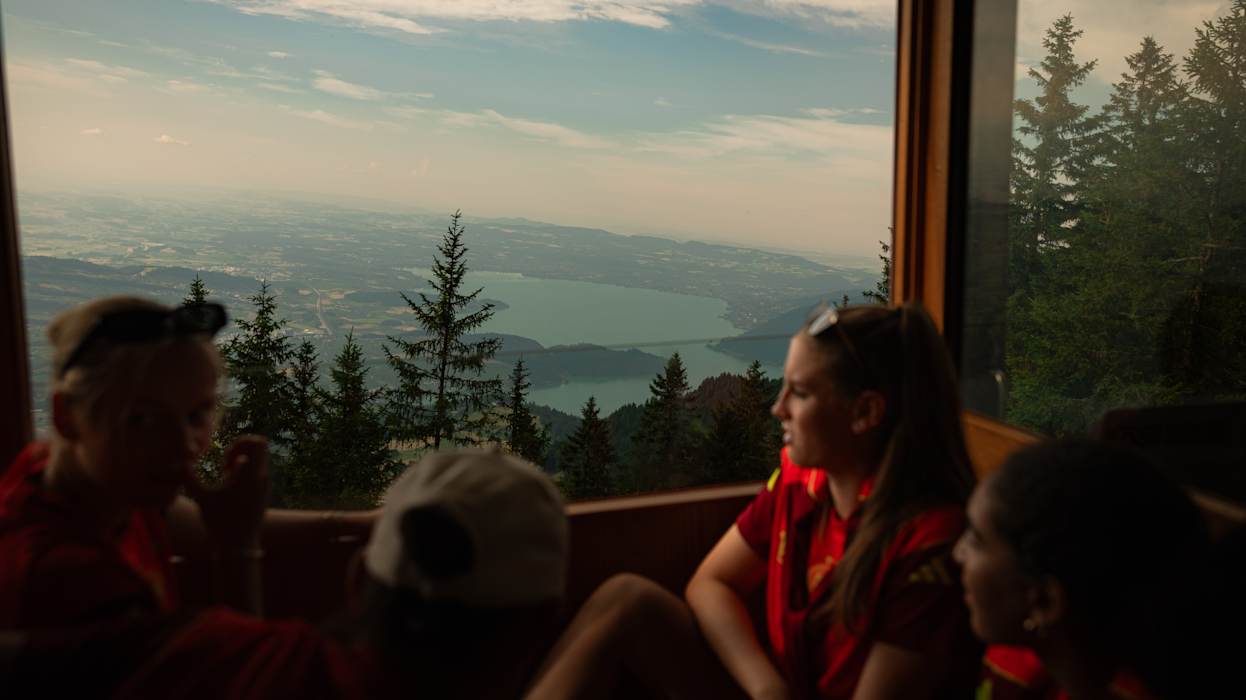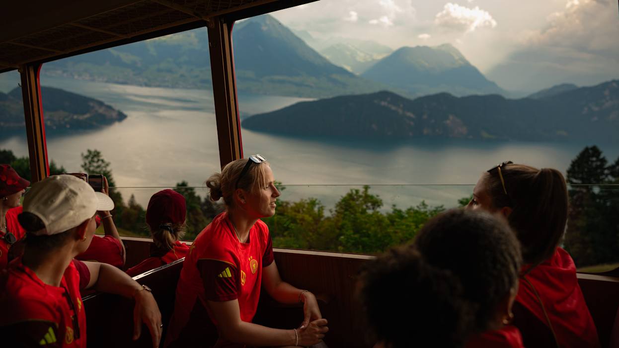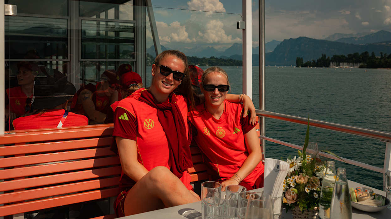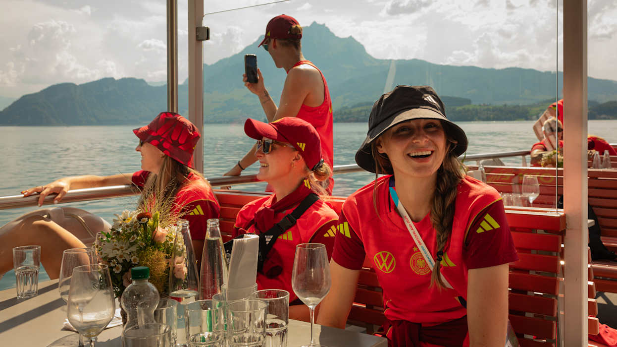 Am Dienstag, dem zweiten Tag im Base Camp in Zürich, hieß es für die DFB-Frauen: Ein kleines Stückchen Schweiz abseits des Rasens. Gegen Mittag fuhr das gesamte Team inklusive Staff nach Luzern, in eine der Host Cities der UEFA Women’s EURO. Im Herzen der Schweiz stand zunächst eine Bootstour auf dem Vierwaldstättersee an, ehe es mit der Rigi Bahn - der ältesten Zahnradbahn Europas - auf die Rigi ging. Nicht umsonst wird diese die "Königin der Berge" genannt, oben erwartete das Team ein einmaliges Panorama über den Vierwaldstättersee. Um es in den Worten des Gastgeberlands auszudrücken: "S'isch schön gsi"! DFB.de zeigt die schönsten Bilder in einer Galerie.
