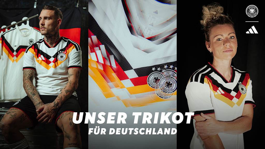 Das Trikot ist eine Hommage an die größten Erfolge und legendärsten Trikots Deutschlands bei Fußball-Weltmeisterschaften. Das neue Heimtrikot erscheint in traditionellem Weiß mit einem Rautenmuster in Schwarz, Rot und Gold, das von den ikonischen Designs der Weltmeister-Trikots inspiriert ist. Die Zickzack-Optik ist an das Modell aus dem Jahr 1994 angelehnt, als die USA das Turnier zum ersten Mal ausrichteten. In Kombination mit einer schwarzen Hose und weißen Stutzen, die das Rautenmuster erneut aufgreifen, entsteht ein zeitgemäßer Look, der die Wurzeln und das klassische Erscheinungsbild der deutschen Nationalmannschaft würdigt.