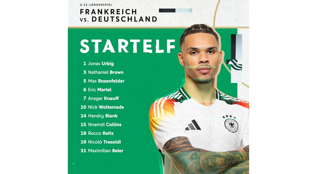 Das letzte Spiel des Jahres steht vor der Tür und es ist nochmal ein richtiges Highlight: Die U 21-Nationalmannschaft misst sich heute Abend (ab 18.15 Uhr, live bei ProSieben MAXX) in Valenciennes mit Gastgeber Frankreich. Cheftrainer Antonio Di Salvo verändert seine Aufstellung im Vergleich zum vorherigen Duell mit Dänemark auf drei Positionen: Für Tim Oermann, Brajan Gruda und Paul Wanner starten Ansgar Knauff, Nick Woltemade und Hendry Blank.