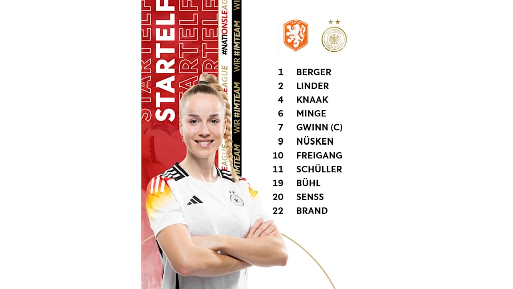 Heute Abend (ab 20.45 Uhr, live in der ARD und im Stream) startet die deutsche Frauen-Nationalmannschaft in Breda gegen Gastgeber Niederlande in die neue Saison der UEFA Women's Nations League. Bundestrainer Christian Wück nimmt im Vergleich zum letzten Länderspiel gegen Italien fünf Änderungen in der Startaufstellung vor und setzt im Tor wieder auf Ann-Katrin Berger, Rebecca Knaak gibt in der Innenverteidigung ihr Länderspieldebüt.