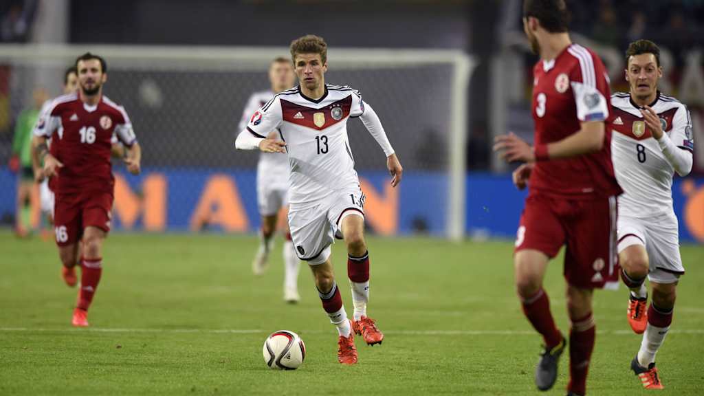 Die Qualifikation für die EM 2016 begann holprig, von den ersten vier Spielen gewann der Weltmeister nur zwei. So stand das zweite DFB-Gastspiel in Georgien vor rund 55.000 Zuschauern unter dem Motto: "Verlieren verboten." Das machten die mit acht Weltmeistern aufgelaufenen Deutschen von Beginn an deutlich. Länderspiel Nummer 900 war eine runde Sache, zur Pause waren die Zweifel schon verflogen. Marco Reus, der schon nach fünf Minuten die Latte traf, und Thomas Müller schossen eine 2:0-Führung heraus – und wie 1995 blieb es gegen buchstäblich chancenlose Georgier bei diesem Resultat.