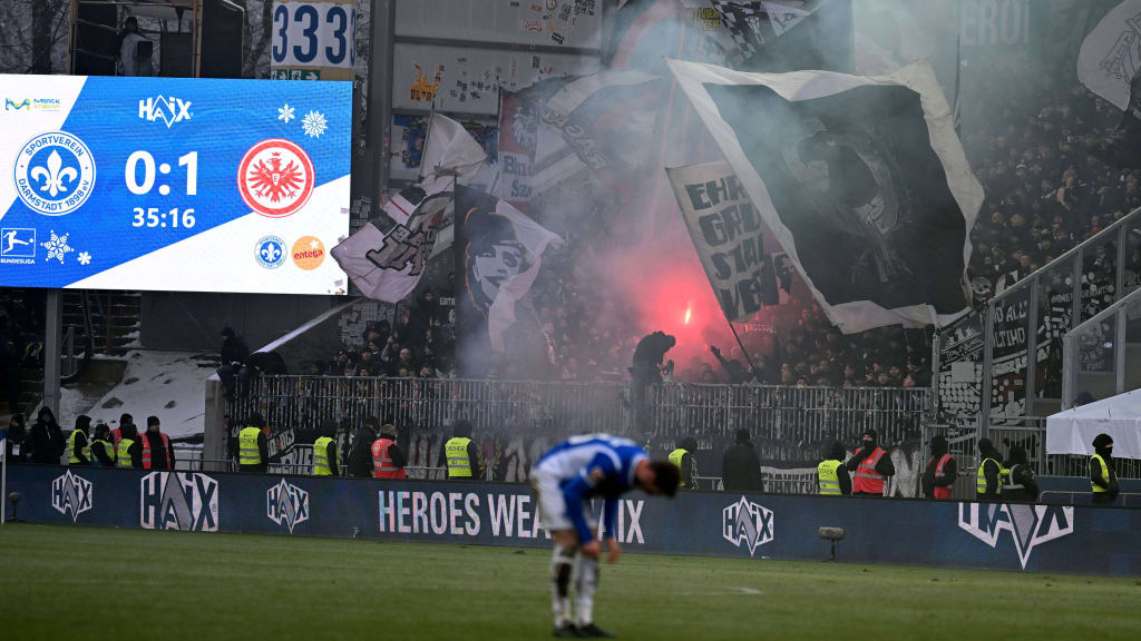 Während des Bundesligaspiels beim SV Darmstadt 98 am 20. Januar 2024 zündeten Frankfurter Zuschauer insgesamt sieben Bengalische Feuer. Nach Abpfiff warfen Frankfurter Zuschauer zudem zwei Böller und schossen zwei Leuchtspuren.