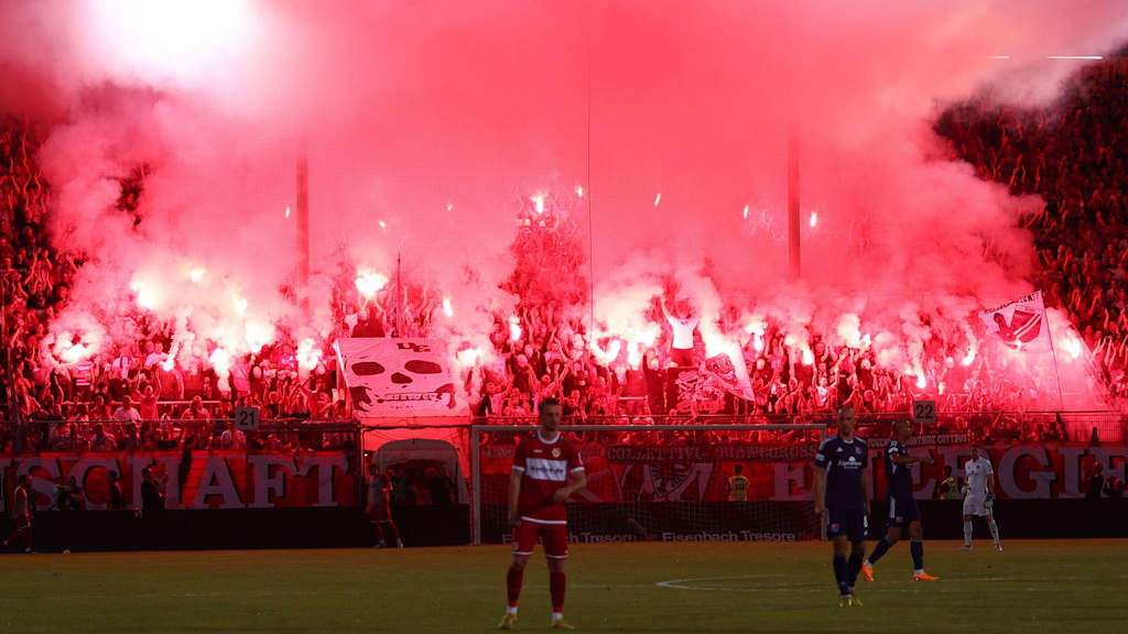 In der 68. Minute warfen Cottbuser Zuschauer eine Plastikflasche in Richtung Spieler, zündeten einen Knallkörper und drangen über ein Tor in den Innenraum ein. Dabei wurden zwei Ordnungskräfte umgestoßen, bis die Polizei die Anhänger wieder zurückdrängte. Zeitgleich wurden im Cottbuser Zuschauerbereich zwei pyrotechnische Gegenstände abgebrannt sowie ein Rauchtopf, ein Knallkörper und weitere Gegenstände wie etwa Fahnenstangen auf das Spielfeld geworfen. Die Partie musste aufgrund der Vorkommnisse für 15 Minuten unterbrochen werden. Nach Spielende zündeten Cottbuser Zuschauer zwei weitere Rauchbomben und warfen zudem eine Rauchbombe und eine Rauchfackel auf das Spielfeld.