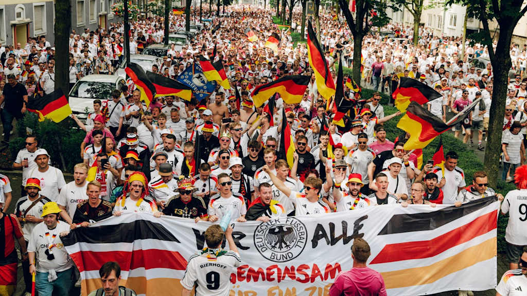 Am Freitag (ab 18 Uhr) trifft unser DFB-Team in Stuttgart im EM-Viertelfinale auf Spanien. Kein Spiel wie jedes andere. Um ein optisch starkes Bild abzugeben, freuen wir uns, wenn ihr das Spiel im weißen Trikot oder T-Shirt besucht, um unsere Mannschaft als geschlossene weiße Wand zu unterstützen. Zur gemeinsamen Einstimmung auf das Spiel beginnt für deutsche Fans um 14.30 Uhr ein Fan-Walk zum Stadion. Treffpunkt ist ab 12 Uhr der Fan-Meeting-Point im Mittleren Schlossgarten.