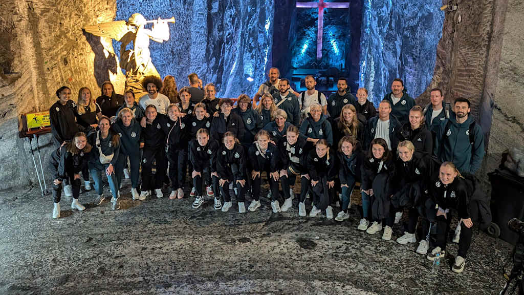 Nach einem Regenerationstag traten die U 20-Frauen mit dem gesamten Trainer*innen- und Staffteam einen Ausflug zur Catedral de Sal an, die etwa eine Stunde Busfahrt von Bogota entfernt liegt. Mit einem ortskundigen Tourguide bahnte sich das DFB-Team den dunklen, teils engen und langen Weg durch die Salzmine, in der sich die beeindruckende Kathedrale befindet. Sie gehört nicht nur zu den größten Touristenattraktionen in Kolumbien, sondern ist auch eins der sieben neuen Weltwunder der Moderne.