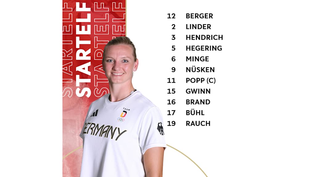 Die Startelf: 12 Berger - 2 Linder, 3 Hendrich, 5 Hegering, 6 Minge, 9 Nüsken, 11 Popp (C), 15 Gwinn, 16 Brand, 17 Bühl, 19 Rauch.