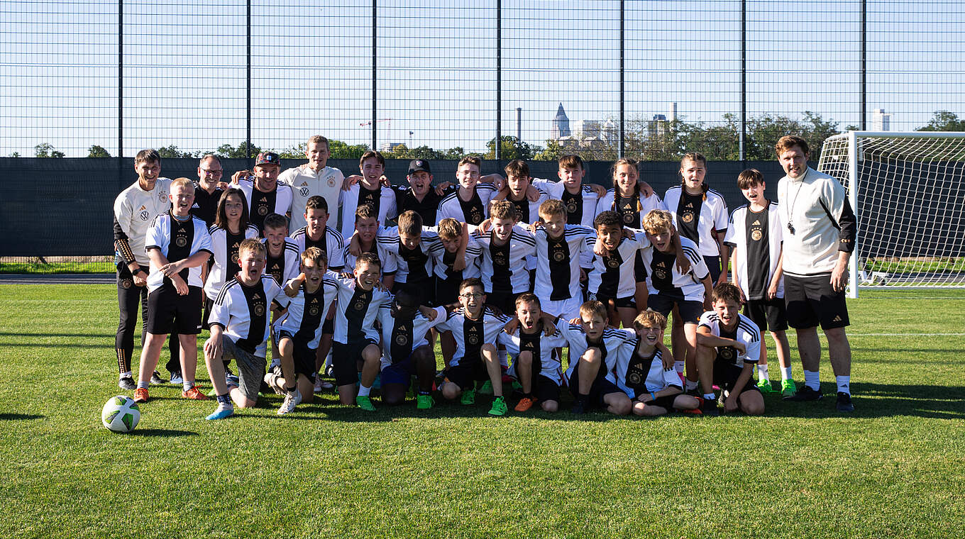 In den Standardausgaben von "Der beste Tag" werden für gewöhnlich Kinder- und Jugendmannschaften aus zwei Amateurvereinen an den DFB-Campus eingeladen. Dort gibt es einen Blick hinter die Kulissen, eine Trainingseinheit mit DFB-U- oder Stützpunkttrainer*innen und große Augen in der Kabine der Nationalteams. Kurz: Die Kids sollen sich für drei Stunden fühlen wie echte Profis und einen unvergesslichen Tag erleben.