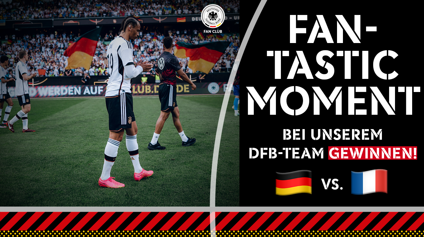 Am 12. September trifft unser DFB-Team auf Vizeweltmeister Frankreich – und du hast die Chance, aus einer einzigartigen Perspektive dabei zu sein. Der Fan Club Nationalmannschaft verlost rund um die Partie in Dortmund exklusiv unter seinen Mitgliedern einen Fan-tastic Moment inklusive Tickets, Übernachtungen sowie An- und Abreise.