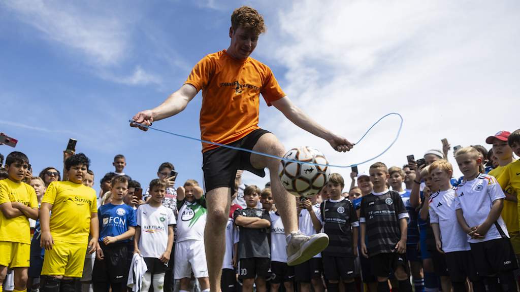 Knapp eine Woche vor Start der UEFA EURO 2024 in Deutschland spielten G-, F- und E-Jugenden aus 92 Amateurvereinen dort, wo sonst die Stars der deutschen Nationalmannschaft trainieren. "Es war für mich ein unglaubliches Gefühl, heute auf diesem Rasen zu spielen. Ich kann es nicht glauben", schwärmte Luan vom VfR 1920 Lich strahlend.