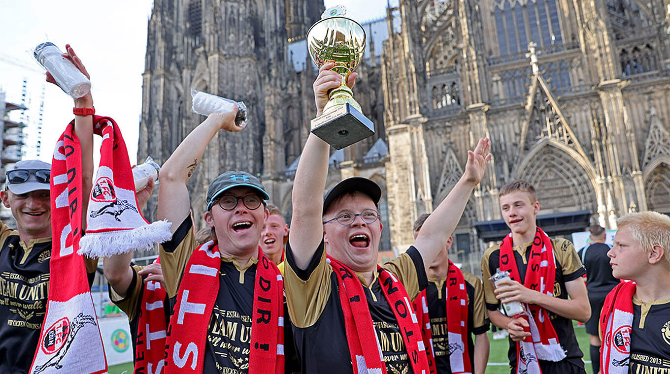 Insgesamt waren an den drei Tagen in Köln rund 350 Fußballer*innen mit und ohne Behinderung dabei. Sie alle spielten mit großem Können und noch größerer Begeisterung im Schatten des altehrwürdigen Doms. Das lockte auch viele Größen des deutschen Fußballs und namhafte Gäste aus Politik, Sport und Gesellschaft an. Darunter Torhüter-Legende Toni Schumacher, der als Botschafter der UEFA Euro 2024 für den Austragungsort Köln im Einsatz ist, TV-Moderatorin Shary Reeves und der ehemalige Nationalspieler Lukas Sinkiewicz.