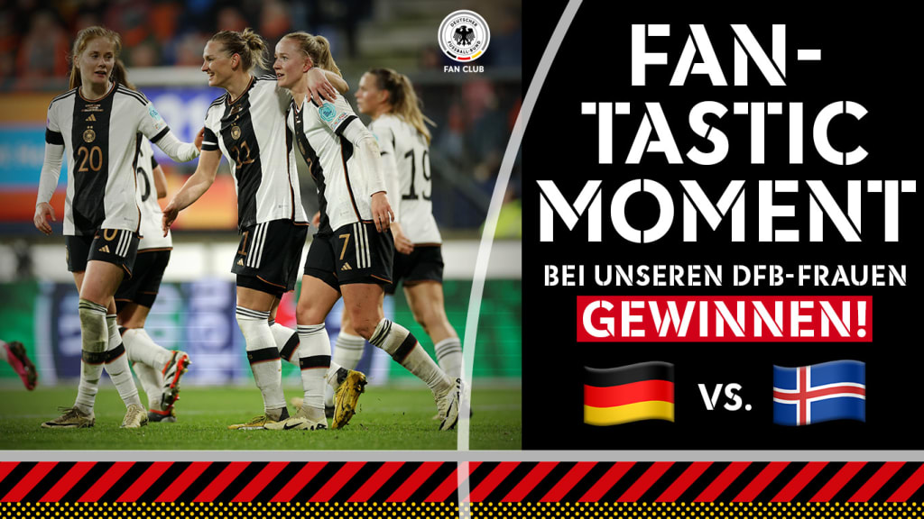 In Aachen findet für unsere DFB-Frauen am 9.April das erste Heimspiel des Jahres statt. Im Rahmen der EM-Qualifikation trifft unsere Frauen-Nationalmannschaft auf Island. Mit ein bisschen Glück hast du die Chance, bei der Vorbereitung auf die Partie hautnah dabei zu sein. Denn der Fan Club Nationalmannschaft verlost einen seiner Fan-tastic Moments inklusive Meet & Greet mit einer Nationalspielerin, An- und Abreise, Tickets sowie zwei Übernachtungen.