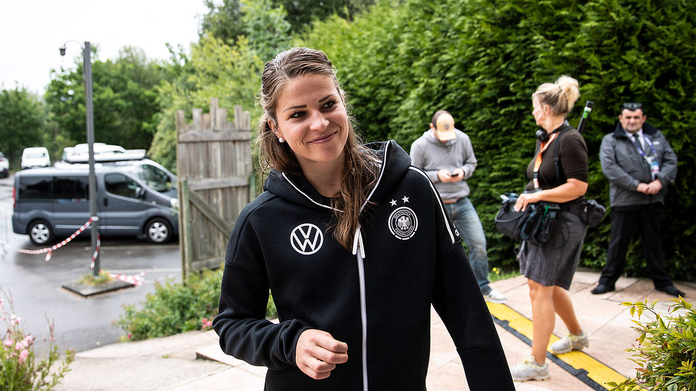 2015 war Rebecca Knaak schon mal für die DFB-Frauen nominiert, kam aber nicht zum Einsatz. Genau zehn Jahre später hat die nun 28 Jahre alte Abwehrspielerin ihr Debüt gefeiert. Mit DFB.de spricht sie über den "sehr besonderen Moment".