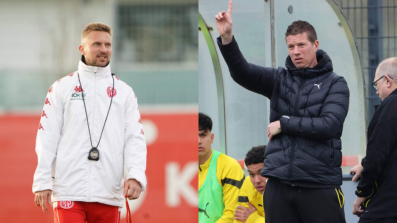 Meistertrainer unter sich: Benjamin Hoffmann (43) trifft mit der U 19 von Mainz 05 heute (ab 11 Uhr, live bei Sky) im Endspiel um die Deutsche A-Junioren-Meisterschaft auf seinen Ex-Klub Borussia Dortmund und könnte die Erfolge von 2017 und 2019 (mit dem BVB) wiederholen. Mike Tullberg (37) und die Borussia sind Titelverteidiger. Im DFB.de-Interview sprechen beide Trainer über das Finale.