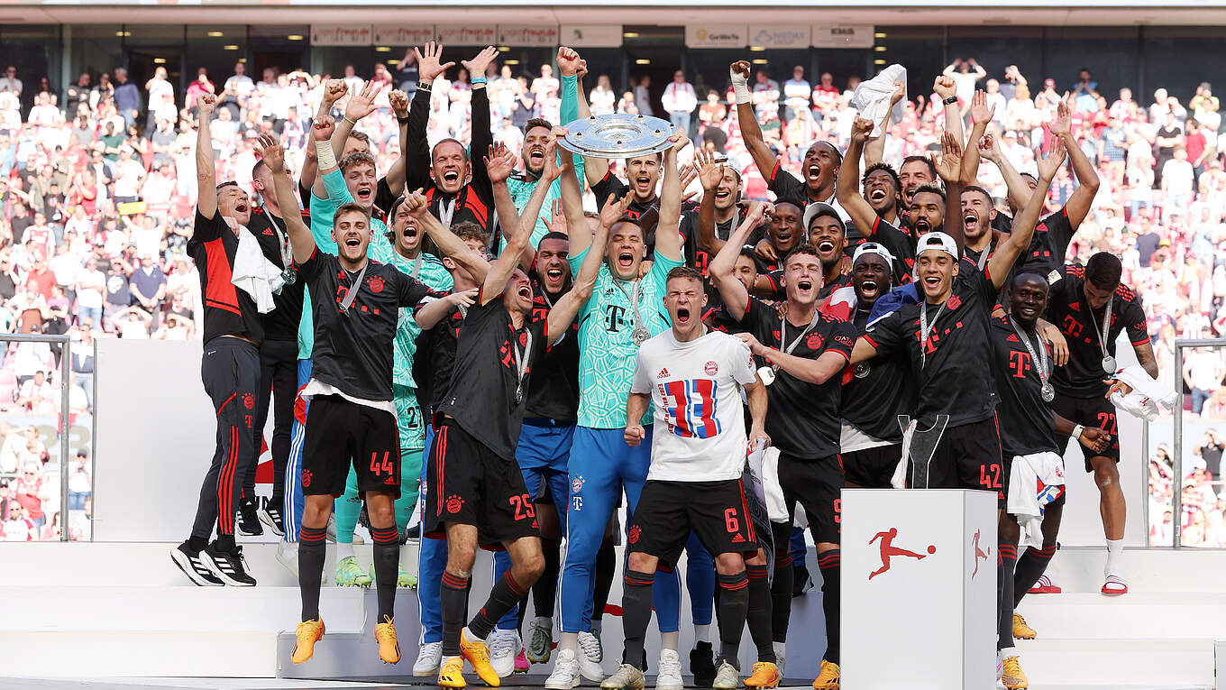 Der FC Bayern München hat sich in einem Herzschlagfinale durch ein 2:1 beim 1. FC Köln noch den elften Meistertitel in Serie geholt und dabei Borussia Dortmund am letzten Bundesliga-Spieltag die Schale doch noch aus den Händen gerissen. Auf DFB.de gratulieren DFB-Präsident Bernd Neuendorf, DFB-Generalsekretärin Heike Ullrich, Bundestrainer Hansi Flick und der Direktor der A-Nationalmannschaft Rudi Völler dem FC Bayern zum 33. Titelgewinn.