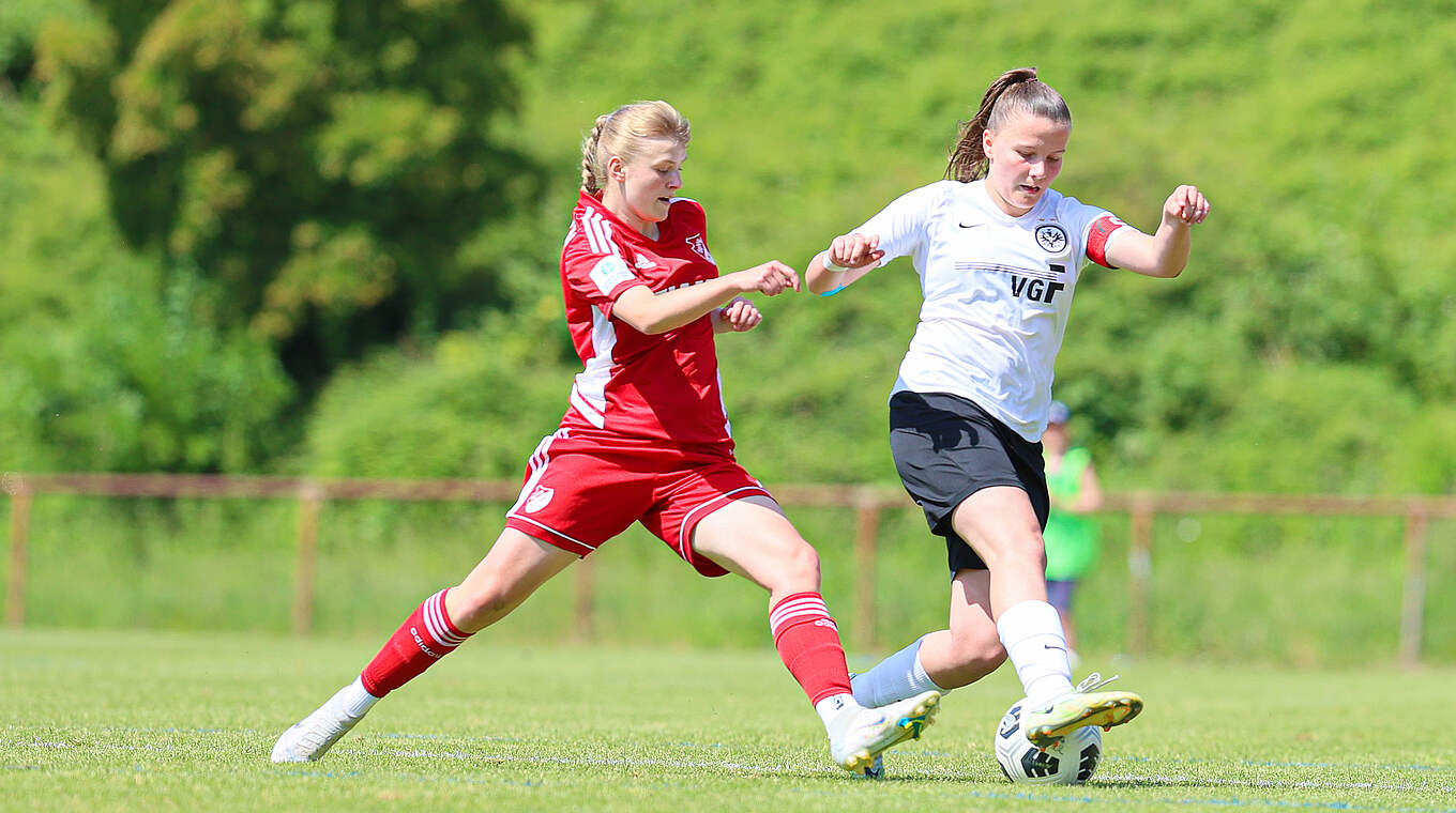 DAS HINSPIEL: Im ersten Aufeinandertreffen (1:1 in Frankfurt) konnte sich keines der beiden Teams in eine wesentlich bessere Ausgangslage bringen. Cora Lepper (46.) brachte die Eintracht, die sich als Meister in der Staffel Süd der B-Juniorinnen-Bundesliga erneut für das Halbfinale um die Deutsche B-Juniorinnen-Meisterschaft qualifiziert hatte, kurz nach der Pause in Führung. Dabei umkurvte sie nach einem Solo auch noch Aurichs Torhüterin Paula Blum und schloss sicher ab. Den Gästen aus Ostfriesland, Titelträger in der Staffel Nord/Nordost, gelang bei ihrer ersten Endrundenteilnahme durch Ana-Carolin Hoffmann (58.) noch der Ausgleich zum 1:1-Endstand.