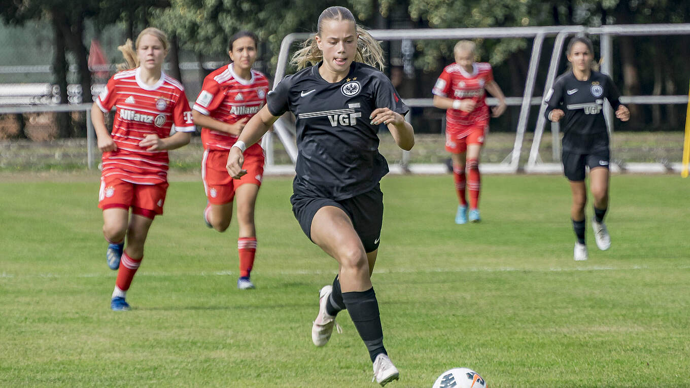 DIE TORJÄGERINNEN: Ana-Carolin Hoffmann, die erfolgreichste Torschützin der SpVg Aurich, stellte mit ihrem Treffer im Hinspiel auch in der Endrunde schon ihre Offensivqualitäten unter Beweis. Während der regulären Spielzeit in der Staffel Nord/Nordost war die 16-Jährige 18-mal erfolgreich. Ligaweit wurde die Ausbeute nur von Elfie Wellhausen (FC Hertha 03 Zehlendorf/19 Saisontore) übertroffen. Frankfurts beste Torschützin Rosa Rückert wartet in der Endrunde noch auf ihren ersten Treffer. Ihre 15 Tore in der Staffel Süd bedeuteten aber nicht nur bei der Eintracht den besten Wert. Die Mittelfeldspielerin wurde vor Anabel Keul (1. FC Nürnberg) und Paulina Rothenberger (Karlsruher SC/beide zehn) Torschützenkönigin.