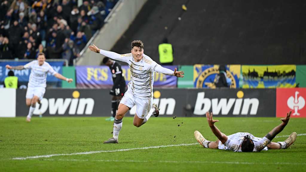 Kai Brünker (64.) und Luca Kerber (79.) versetzten das Ludwigsparkstadion im Duell "David gegen Goliath" gegen den Vorjahresfinalisten auf schwierigem Geläuf in Jubelekstase. Der zuvor erst eingewechselte Frankfurter Noel Futkeu sah nach einer Tatlichkeit obendrein noch die Rote Karte (82.). Für Saarbrücken war es der vierte Sieg gegen einen Bundesligisten im Pokal aus den vergangenen fünf Spielen. In Leverkusen verschafften Treffer von Victor Boniface (12.) und Exequiel Palacios (29.) dem Tabellenführer der Bundesliga einen lange beruhigenden Vorsprung. Nach dem Anschlusstreffer durch Sebastian Klaas für Paderborn (83.) wurde es nur kurzzeitig spannend, denn Patrik Schick legte nur vier Minuten später den dritten Leverkusener Treffer nach (87.).