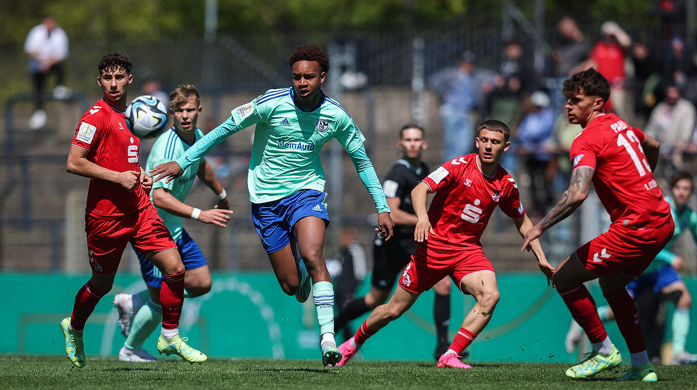 Die Karten sind vor dem Achtelfinale im DFB-Pokal der Junioren also neu gemischt. Im Meisterschaftshinspiel der A-Junioren-Bundesliga West hatten sich der 1. FC Köln und der FC Schalke 04 vor wenigen Wochen 1:1 (1:0) getrennt. Den Kölner Führungstreffer von Jaka Cuber-Potocnik (38.) konnte Berkay Karaca (49.) für Schalke 04 ausgleichen. Klar ist: Im DFB-Pokal der Junioren wird es diesmal mit Sicherheit einen Sieger geben - eventuell wie im Endspiel der abgelaufenen Saison in der Verlängerung oder notfalls sogar erst im Elfmeterschießen.