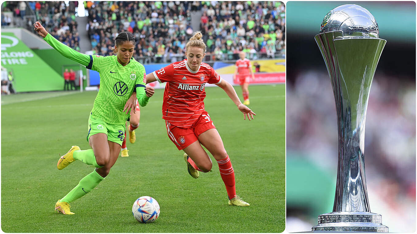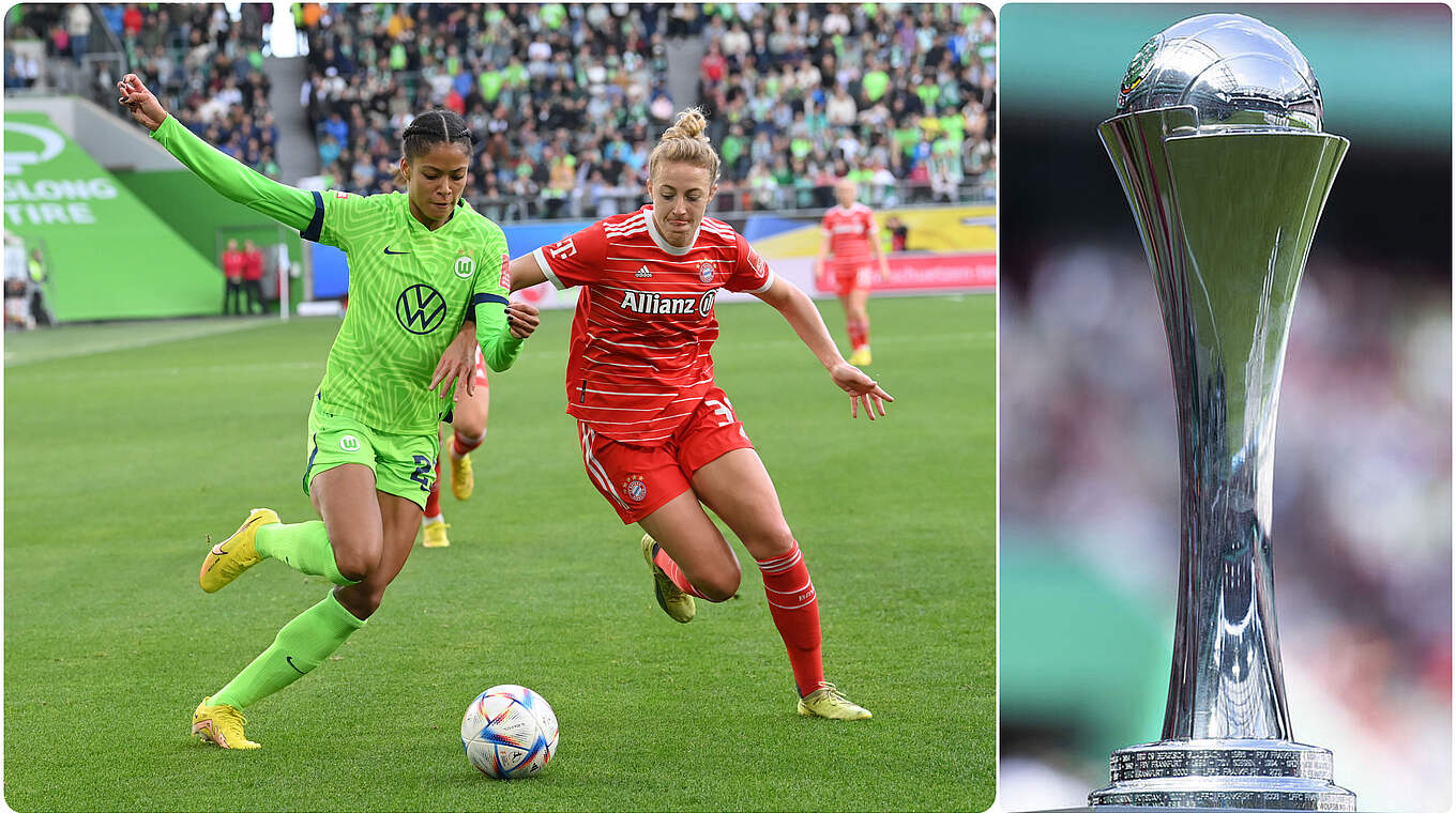 Halbfinalduell auch im Free-TV: der FC Bayern empfängt Titelverteidiger Wolfsburg Getty Images/Yuliia Perekopaiko/DFB/Collage DFB
