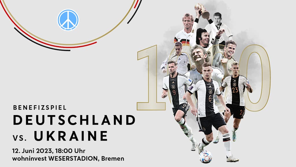 Wenn das DFB-Team am 12. Juni zum neunten Mal auf die ukrainische Nationalmannschaft trifft, wird in Bremen Geschichte geschrieben: Zum einen wird es das 1000 Länderspiel der deutschen Nationalmannschaft in der Länderspielgeschichte sein, zum anderen soll mit dem Benefizspiel ein klares Zeichen für Frieden und Völkerverständigung und gegen Krieg und Zerstörung gesetzt werden.
